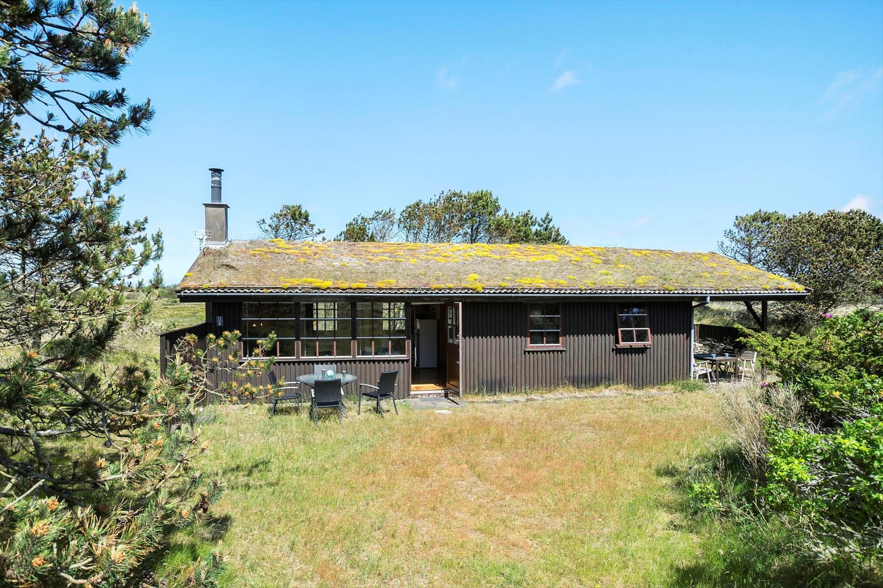 Stugor i Rødhus, Nordjylland, med plats för 4 vuxna och 2 husdjur. Trevlig inredning med bl.a. brasa, och det finns dessutom diskmaskin i bostaden.