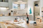 Stugor i Saltum, Nordjylland, med plats för 6 vuxna och 2 husdjur. Trevlig inredning med bl.a. brasa, och det finns dessutom tvättmaskin, diskmaskin och torktumlare i bostaden.