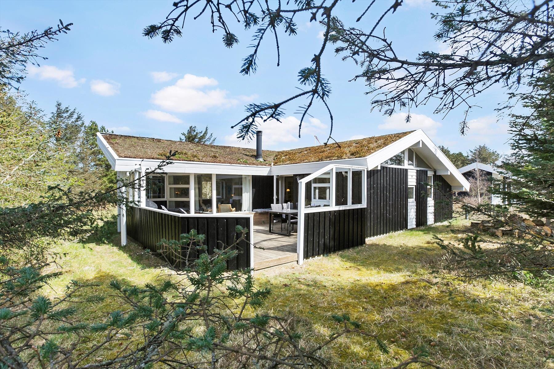 Stugor i Saltum, Nordjylland, med plats för 6 vuxna och 2 barn. Trevlig inredning med bl.a. brasa, och det finns dessutom tvättmaskin och diskmaskin i bostaden.