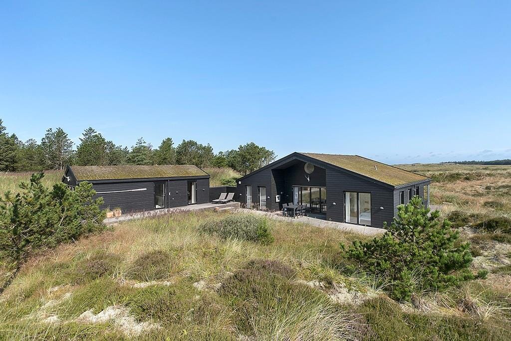 Stugor i Rødhus, Nordjylland, med plats för 8 vuxna och 2 husdjur. Trevlig inredning med bl.a. brasa, och det finns dessutom tvättmaskin och diskmaskin i bostaden.