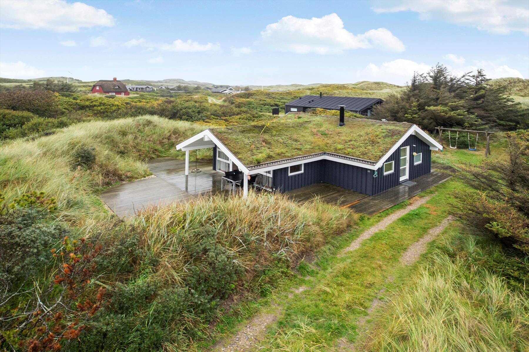 Stugor i Saltum, Nordjylland, med plats för 4 vuxna och 2 barn. Trevlig inredning med bl.a. brasa, och det finns dessutom tvättmaskin och diskmaskin i bostaden.