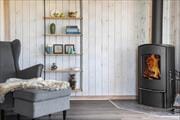 Stugor i Skaven Strand, Västjylland, med plats för 6 vuxna och 1 husdjur. Trevlig inredning med bl.a. brasa, och det finns dessutom tvättmaskin och diskmaskin i bostaden.