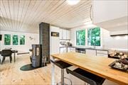 Stugor i Bork Hytteby, Västjylland, med plats för 4 vuxna och 1 husdjur. Trevlig inredning med bl.a. brasa.