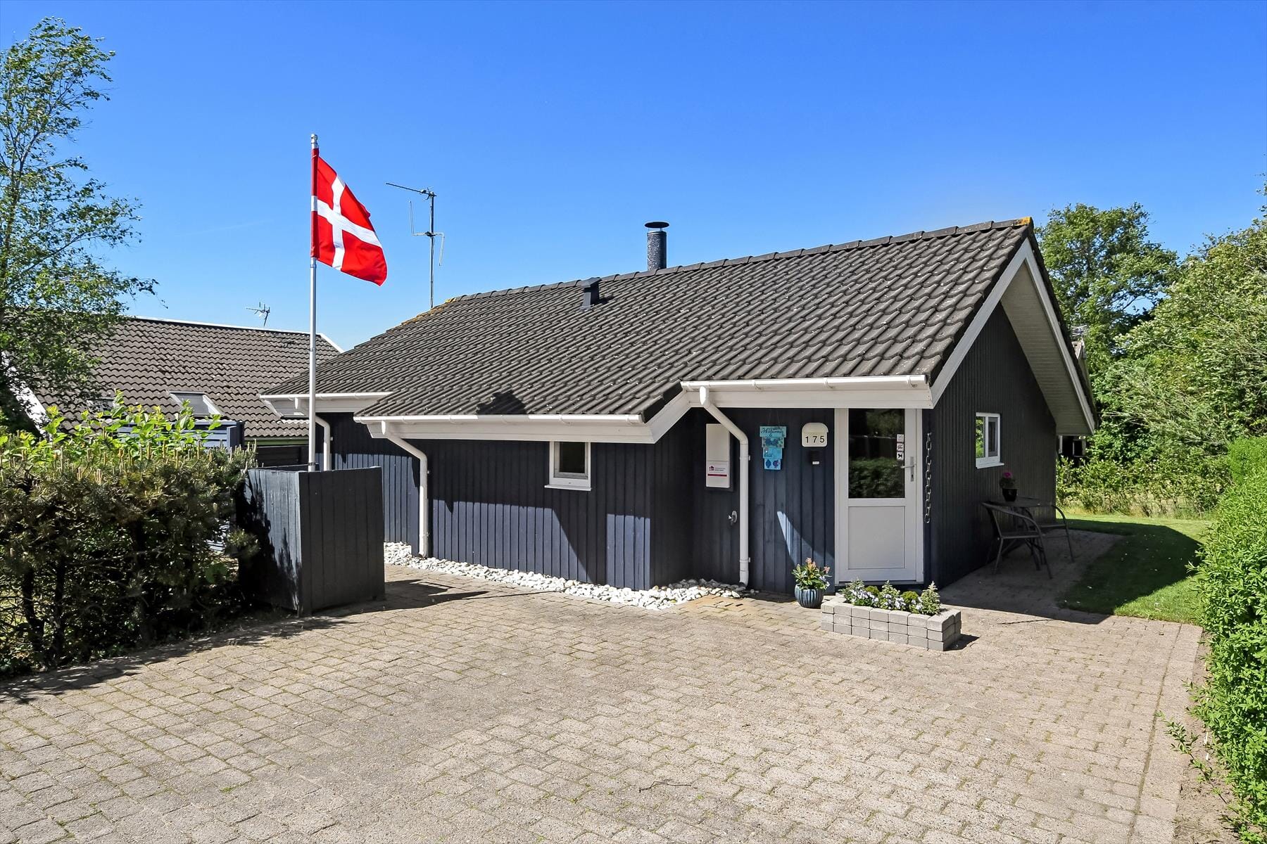 Stugor i Bork Hytteby, Västjylland, med plats för 5 vuxna och 1 husdjur. Trevlig inredning med bl.a. brasa, och det finns dessutom tvättmaskin och diskmaskin i bostaden.