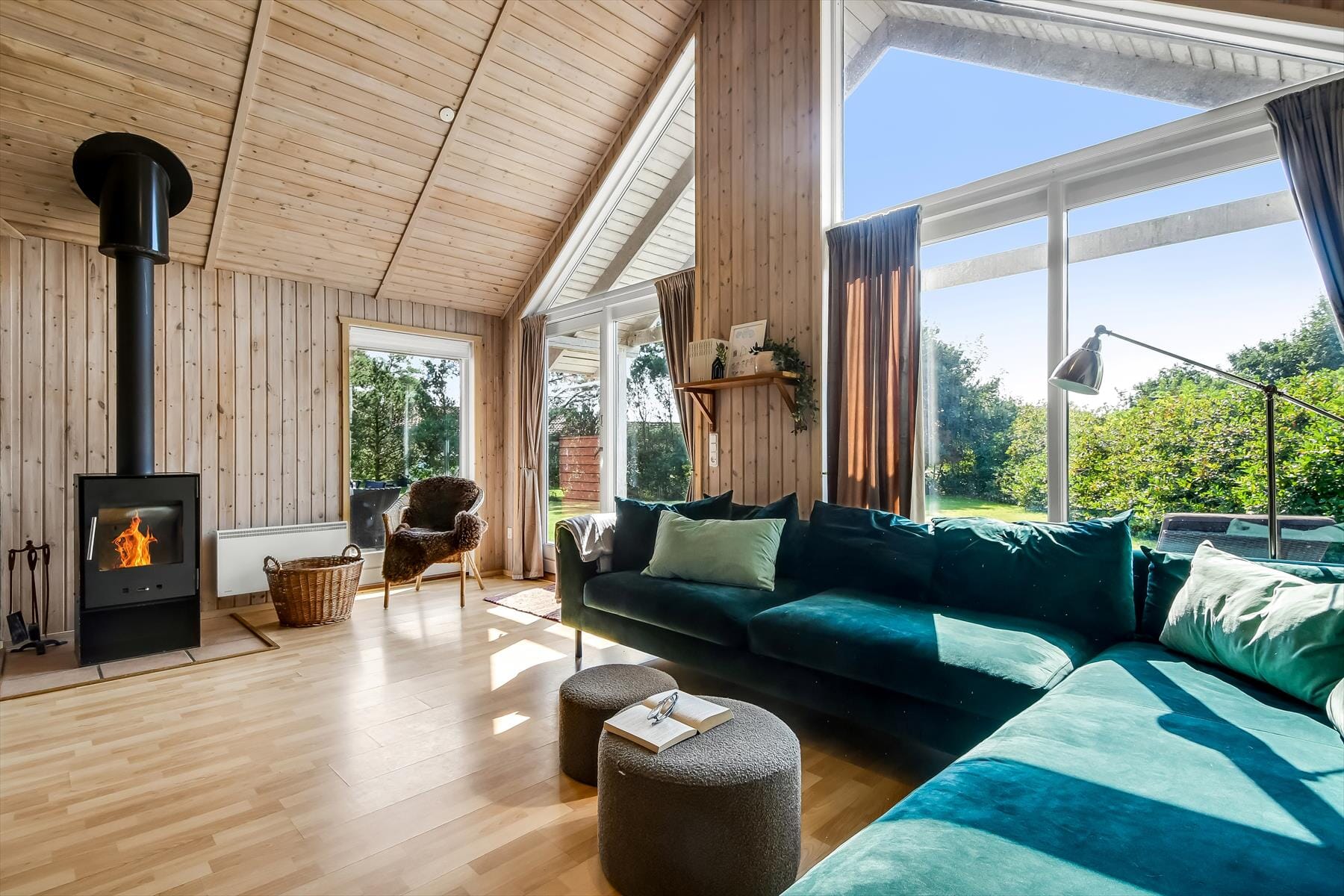 Stugor i Hemmet, Västjylland, med plats för 6 vuxna och 2 husdjur. Trevlig inredning med bl.a. brasa, och det finns dessutom tvättmaskin och diskmaskin i bostaden.