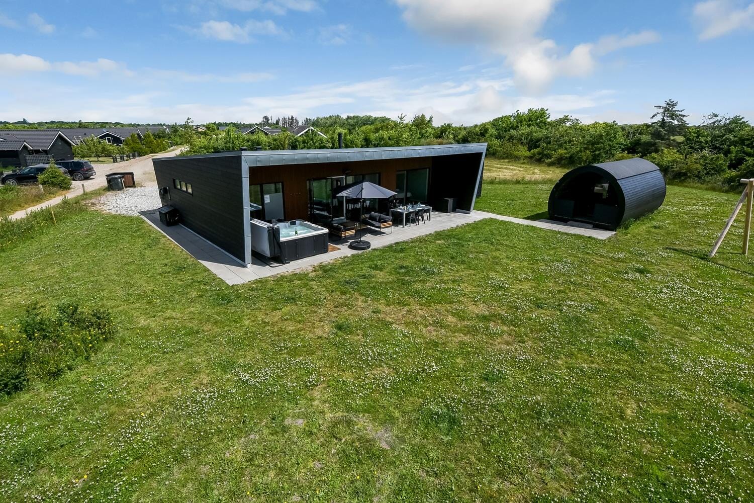 Stugor i Skaven Strand, Västjylland, med plats för 6 vuxna och 2 husdjur. Trevlig inredning med bl.a. brasa, och det finns dessutom tvättmaskin, diskmaskin och torktumlare i bostaden.