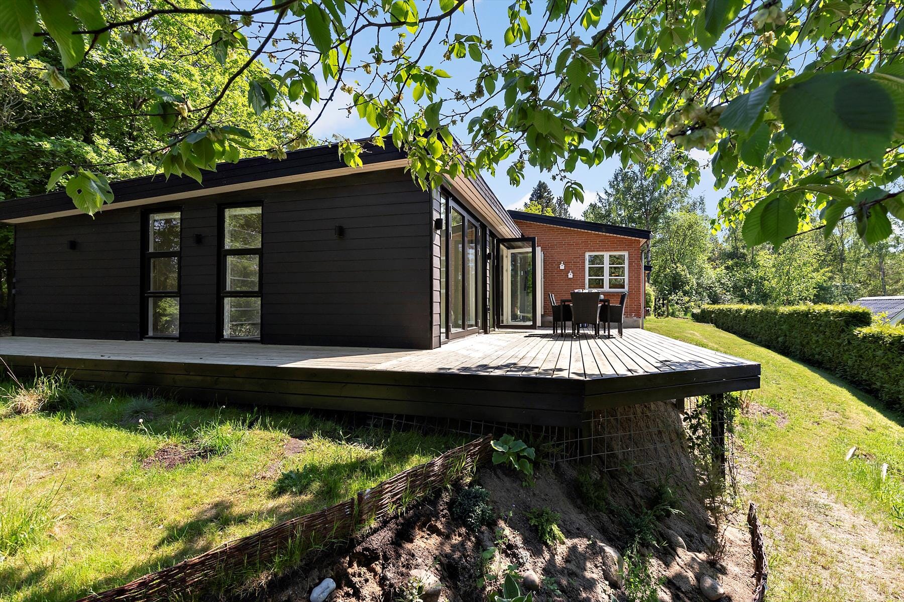 Stugor i Ebeltoft, Östjylland, med plats för 8 vuxna. Trevlig inredning med bl.a. brasa, och det finns dessutom tvättmaskin, diskmaskin och torktumlare i bostaden.