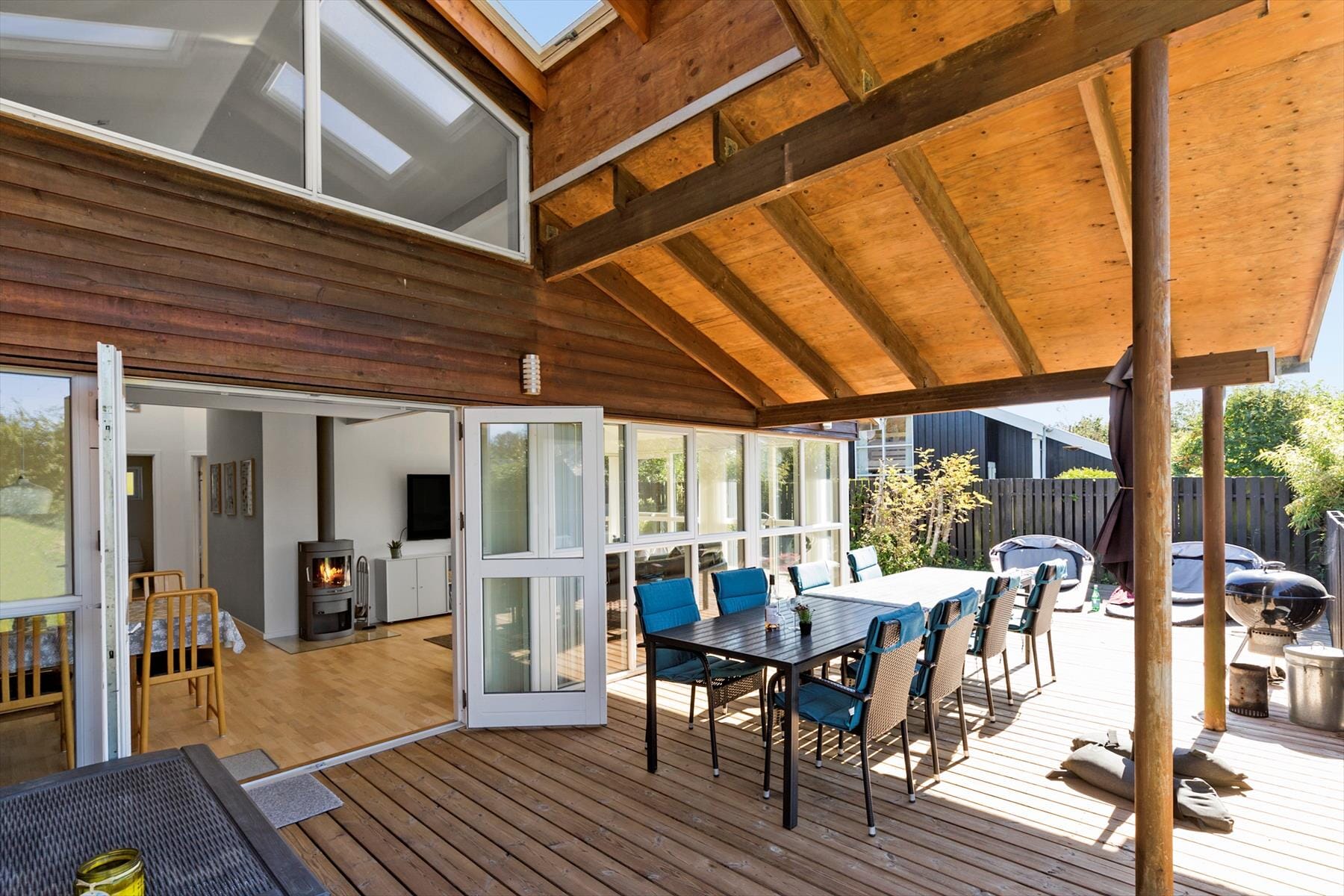 Stugor i Ebeltoft, Östjylland, med plats för 6 vuxna. Trevlig inredning med bl.a. brasa, och det finns dessutom tvättmaskin, diskmaskin och torktumlare i bostaden.