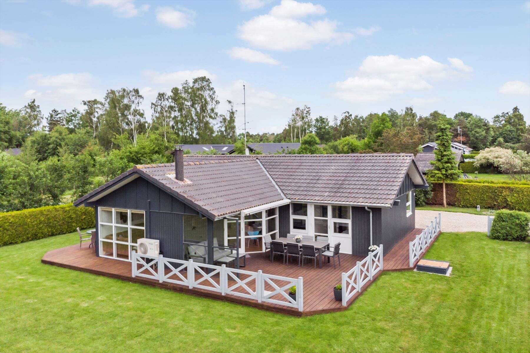 Bostaden är 110 kvm stor med en tomt på 1 194 kvm, där det bl.a. finns gungor och sandlåda.