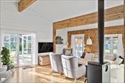 Stugor i Marielyst, Lolland-Falster, med plats för 6 vuxna, 4 barn och 2 husdjur. Trevlig inredning med bl.a. brasa, och det finns dessutom tvättmaskin och diskmaskin i bostaden.