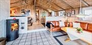 Stugor i Henne Strand og By, Västjylland, med plats för 6 vuxna och 1 husdjur. Trevlig inredning med bl.a. brasa, och det finns dessutom tvättmaskin och diskmaskin i bostaden.