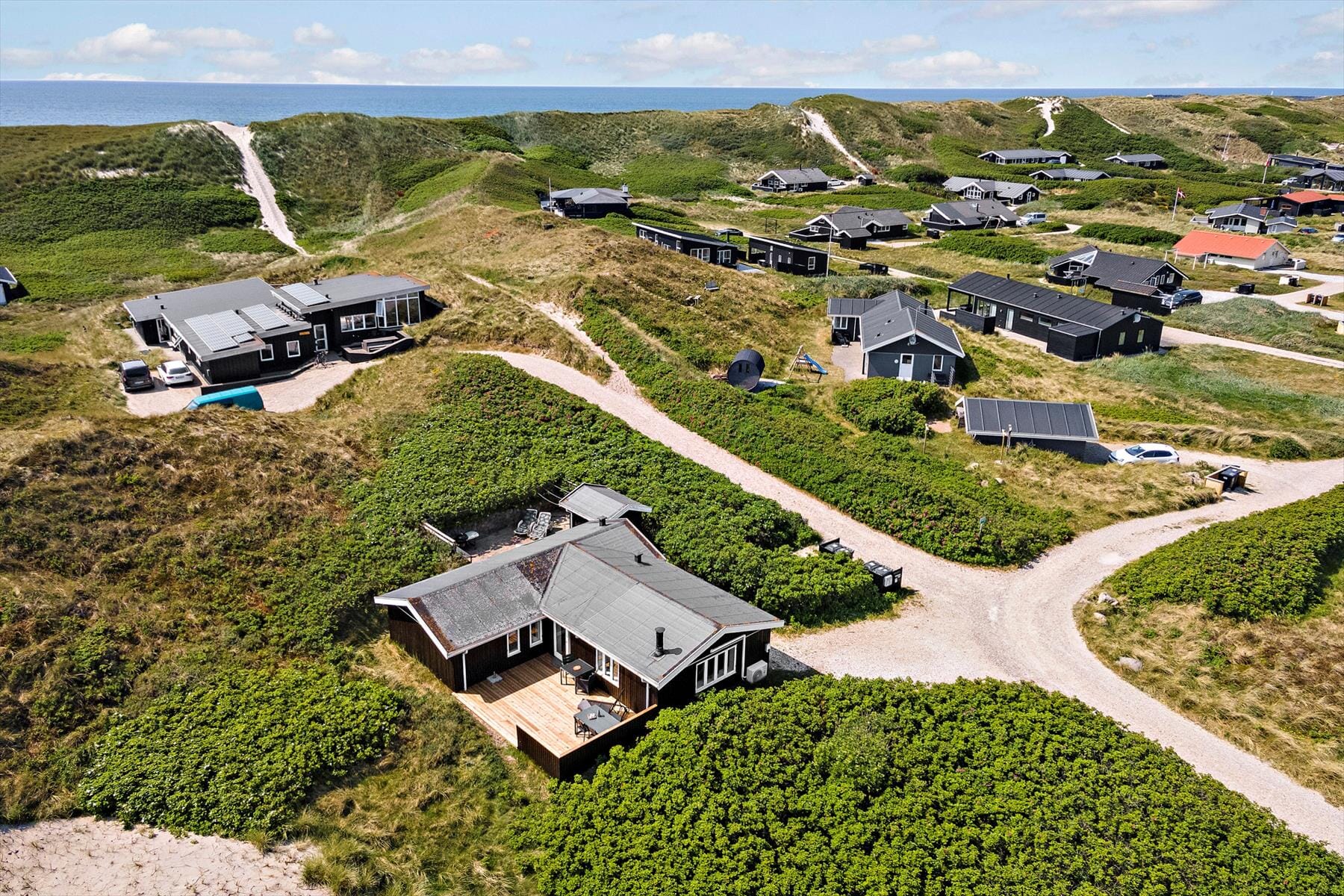 Stugor i Aargab, Västjylland, med plats för 6 vuxna och 1 husdjur. Trevlig inredning med bl.a. brasa, och det finns dessutom tvättmaskin, diskmaskin och torktumlare i bostaden.