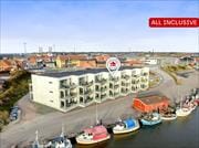 Lägenhet i Hvide Sande Strand og By, Västjylland, med plats för 4 vuxna. Trevlig inredning, och det finns dessutom tvättmaskin, diskmaskin och torktumlare i bostaden.