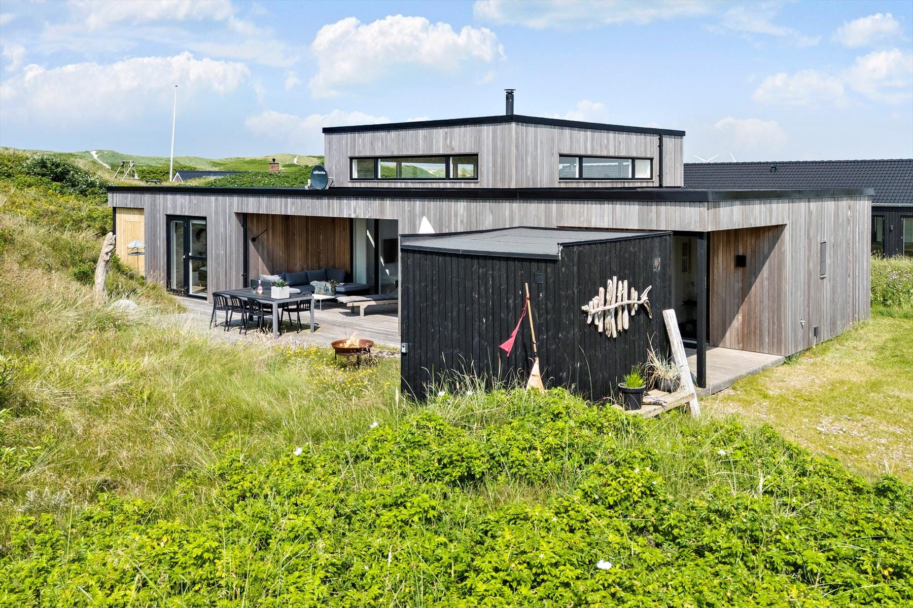 Stugor i Aargab, Västjylland, med plats för 8 vuxna. Trevlig inredning med bl.a. brasa, och det finns dessutom tvättmaskin, diskmaskin och torktumlare i bostaden.
