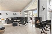 Stugor i Tranum Strand, Nordjylland, med plats för 5 vuxna. Trevlig inredning med bl.a. brasa, och det finns dessutom tvättmaskin, diskmaskin och torktumlare i bostaden.