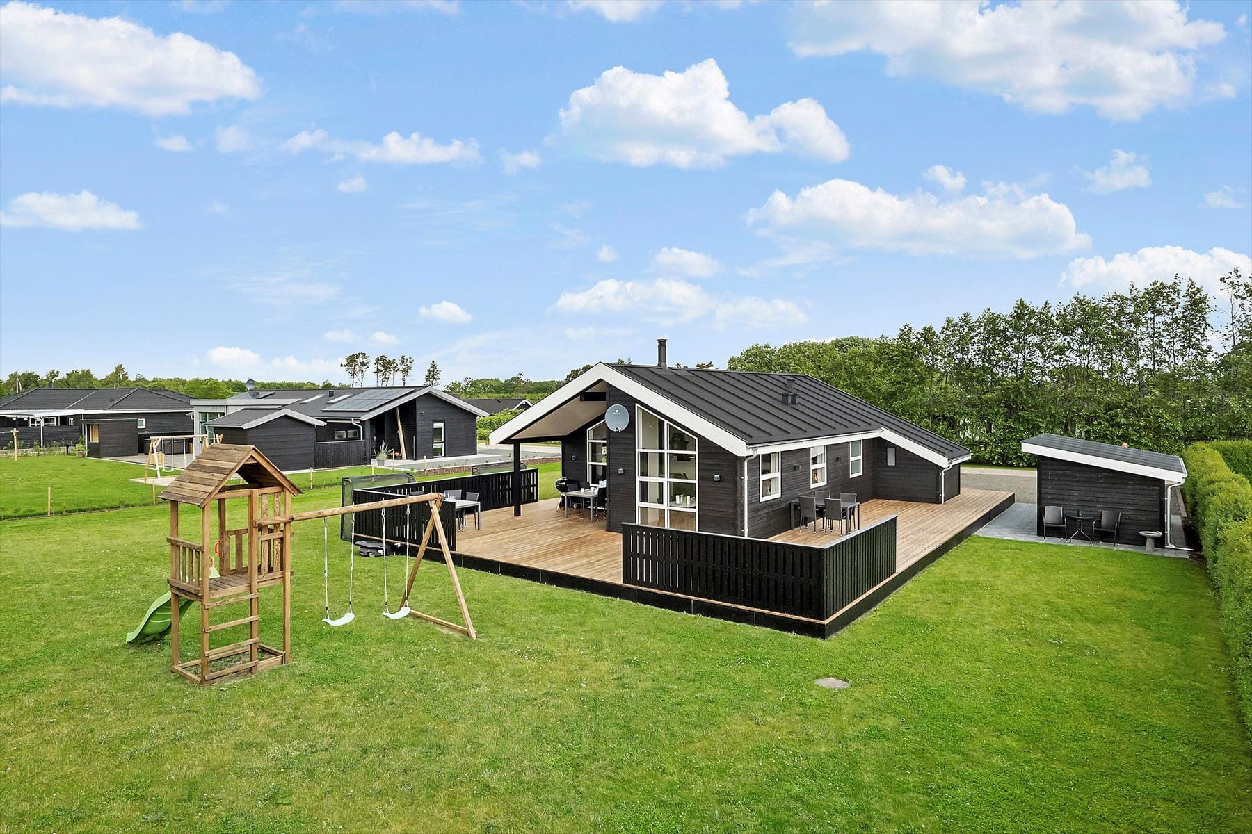 Bostaden är 87 kvm stor med en tomt på 1 200 kvm, där det bl.a. finns gungor.