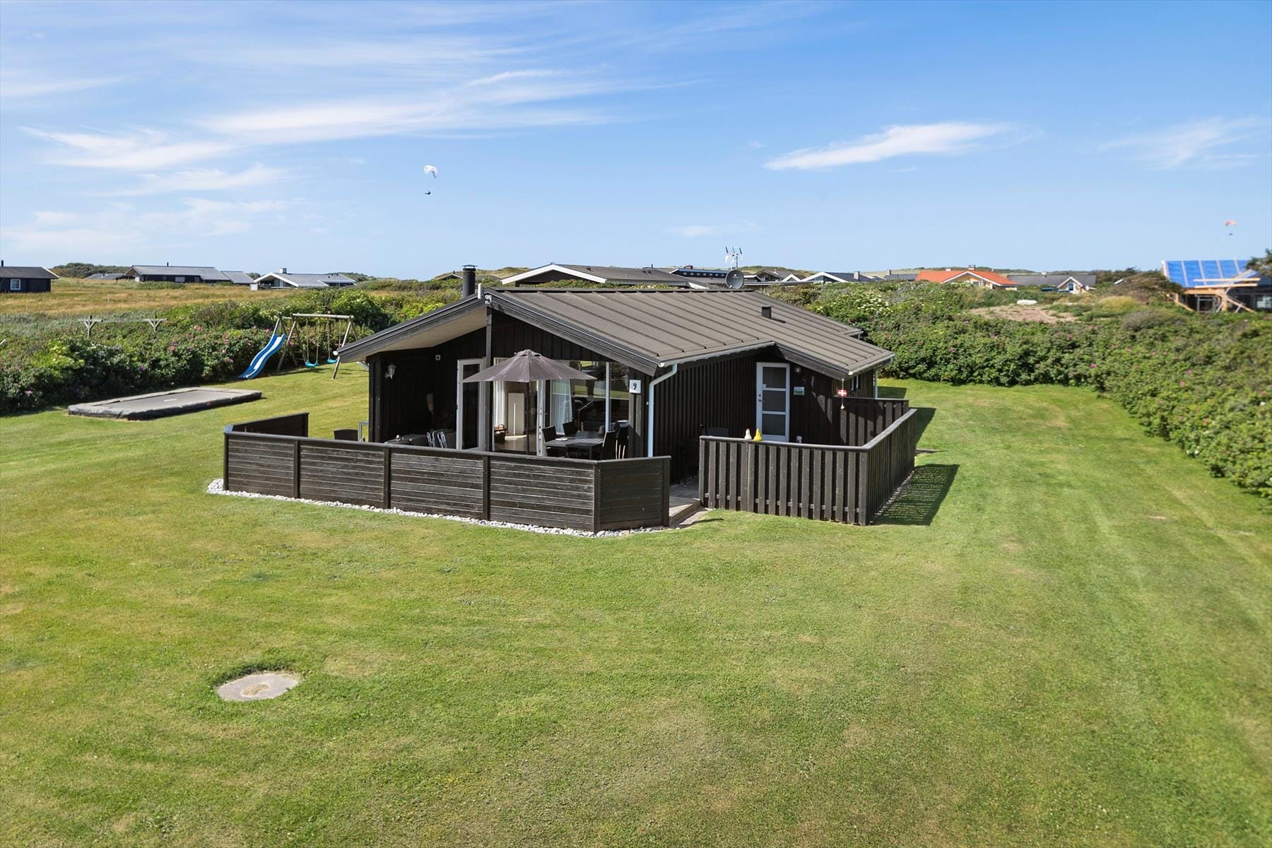 Bostaden är 72 kvm stor med en tomt på 1 250 kvm, där det bl.a. finns gungor och studsmatta.