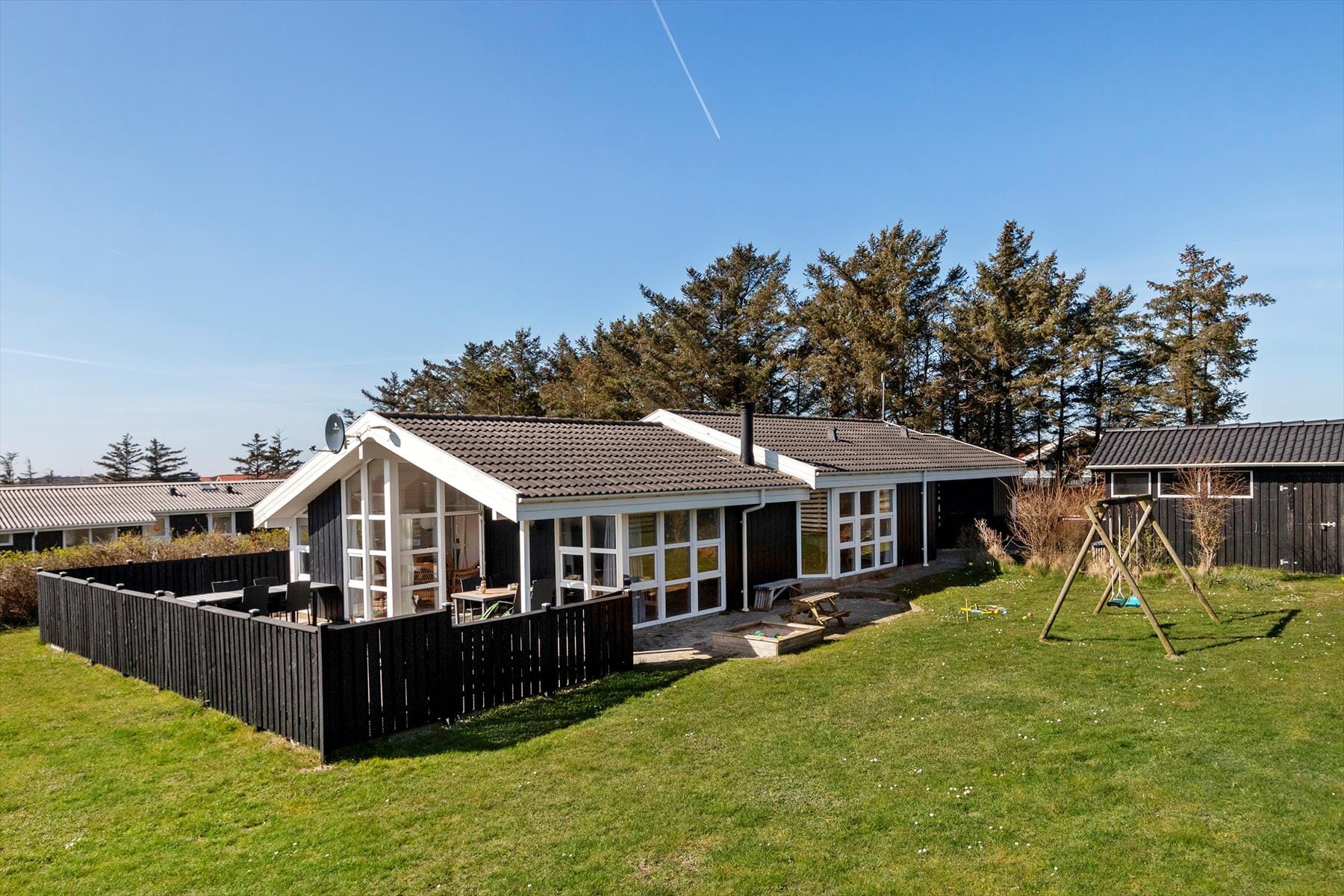 Bostaden är 118 kvm stor med en tomt på 1 287 kvm, där det bl.a. finns gungor, sandlåda och studsmatta.