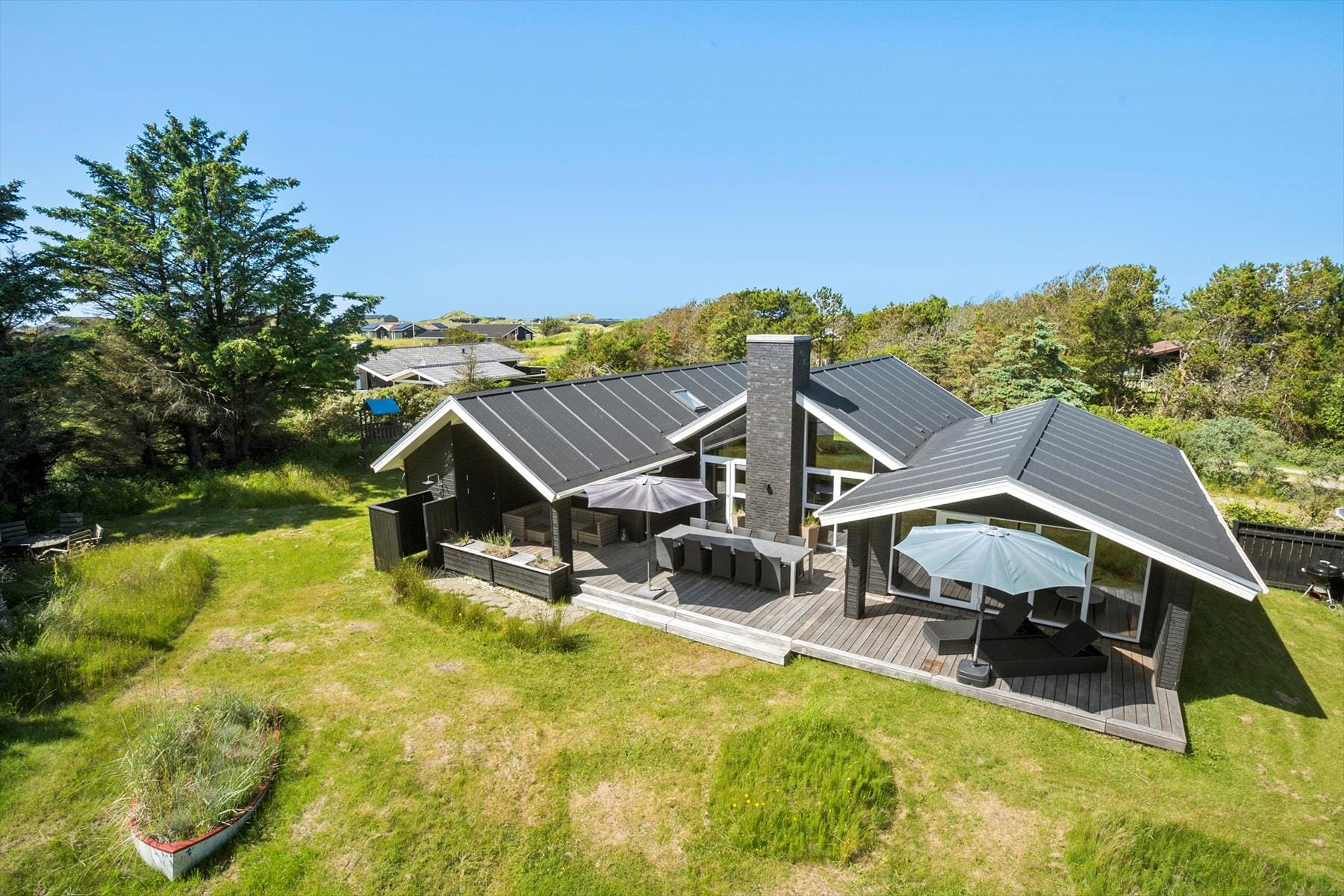 Stugor i Grønhøj, Nordjylland, med plats för 8 vuxna och 2 barn. Trevlig inredning med bl.a. brasa, och det finns dessutom tvättmaskin, diskmaskin och torktumlare i bostaden.