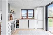 Indenfor mødes du af en lys og elegant atmosfære, hvor moderne materialer og en stilren indretning går hånd i hånd med den klassiske sommerhusstemning. Her er brændeovn i stuen, så du kan varme dig foran flammerne på kølige dage, og store vinduespartier, der slipper både lyset og naturen helt ind i rummene. Det åbne opholdsrum er husets hjerte – her kan du tilberede feriemåltider i køkkenet, dække op til fælles spisning og læne dig tilbage i sofaen, mens du nyder udsigten til det grønne landskab og fjorden i horisonten. Den lyse hems skaber ekstra plads og er et oplagt sted til både hygge og leg. Med to badeværelser, hvoraf det ene er udstyret med badekar, er der også gode muligheder for lidt ekstra luksus i hverdagen – måske med et langt, varmt karbad efter en frisk gåtur langs fjorden?