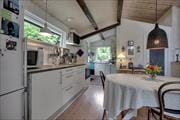 Stugor i Klint, Odsherred, med plats för 5 vuxna. Trevlig inredning, och det finns dessutom tvättmaskin och diskmaskin i bostaden.