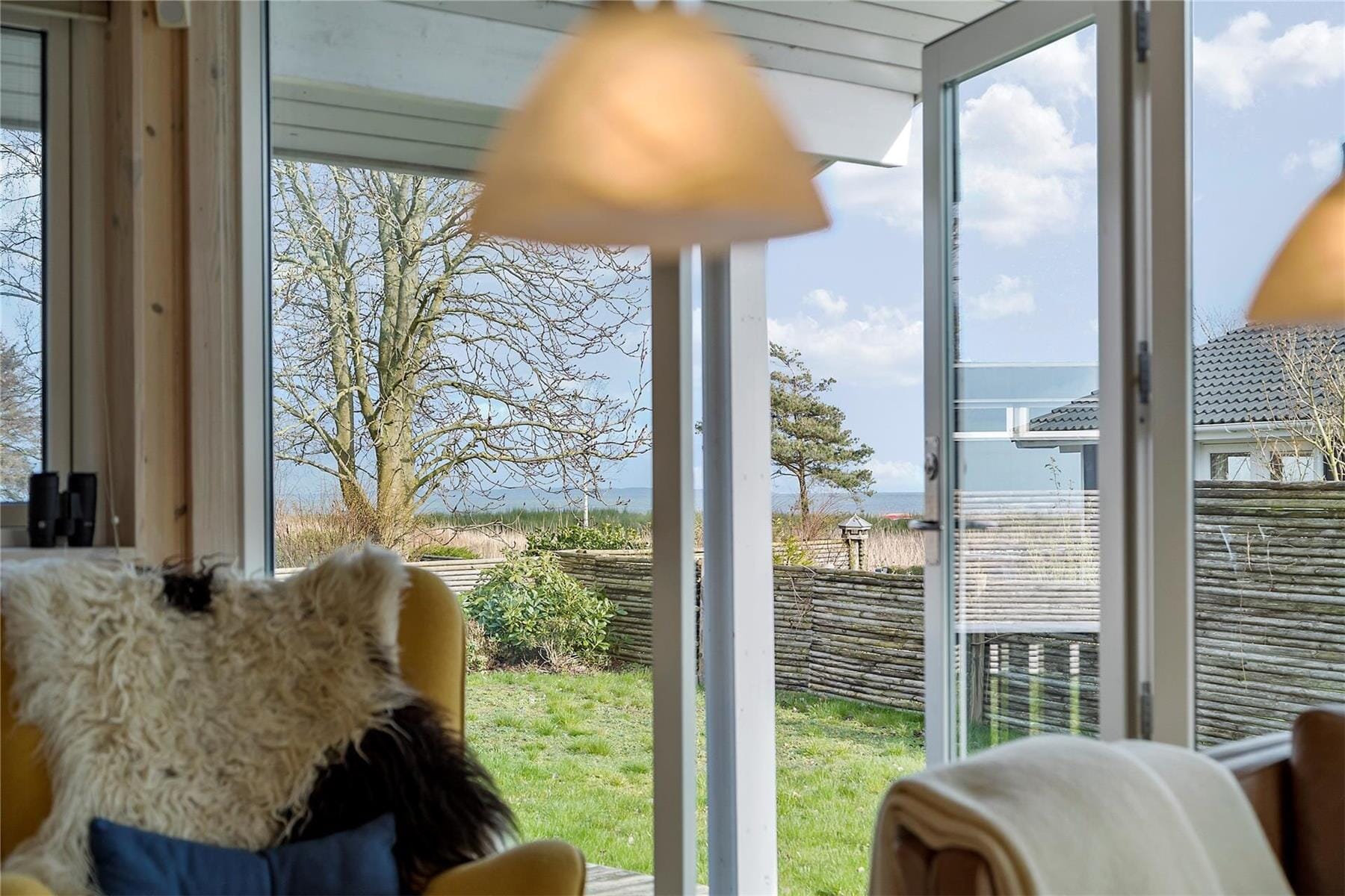 Indretningen er enkel og indbydende med plads til afslapning og hyggelige stunder sammen. Her kan Du læne Dig tilbage med en god bog, nyde morgenkaffen eller blot lade skuldrene falde helt ned efter en dag ude i det fri.
