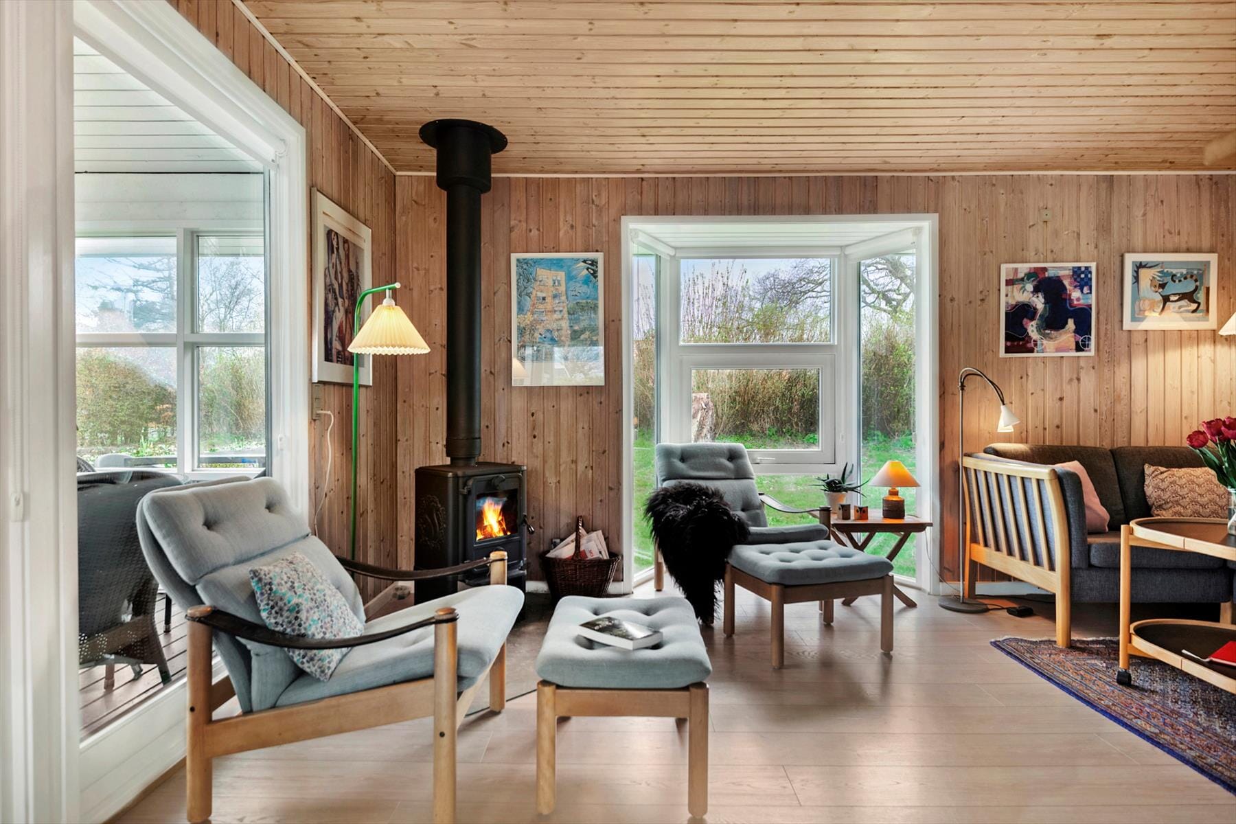 När du kliver in i semesterhuset känner du genast den varma och avslappnade atmosfären. Inredningen är enkel och funktionell, samtidigt som den ger en autentisk semesterhuskänsla. De stora fönstren släpper in mycket naturligt ljus, och från vardagsrummet har du utsikt över den omgivande naturen, vilket gör det till en perfekt plats för att spendera tid tillsammans. Här kan du koppla av efter en aktiv dag och finna ro i de bekväma möblerna.
