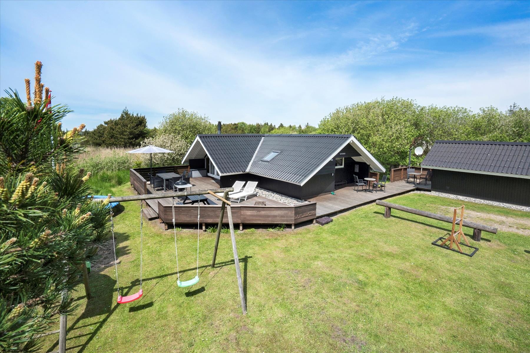 Bostaden är 87 kvm stor med en tomt på 2 700 kvm, där det bl.a. finns gungor och sandlåda.