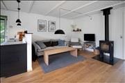 Stugor i Overby Lyng, Odsherred, med plats för 4 vuxna och 2 barn. Trevlig inredning med bl.a. brasa, och det finns dessutom tvättmaskin, diskmaskin och torktumlare i bostaden.