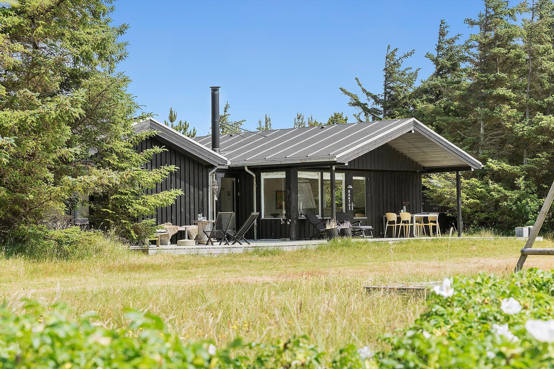 Stugor i Klegod, Västjylland, med plats för 6 vuxna och 1 husdjur. Trevlig inredning med bl.a. brasa, och det finns dessutom diskmaskin i bostaden.