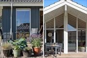 Som­mer­hu­set er omgivet af en stor terrasse, hvor en del er overdækket, så udelivet kan nydes i al slags vejr. Her kan du starte dagen med frisk luft og morgenmad under åben himmel, eller slutte aftenen med et glas vin, mens solen går ned over området. På varme dage kan terrassen blive jeres faste base – med sol­bad­ning, grill og af­slap­pe­de timer i havemøblerne. Om aftenen, når duggen falder, er det en fornøjelse at sidde under det overdækkede tag og lytte til stilheden, kun afbrudt af naturens egne lyde. Her er plads til både leg, latter og ro – alt det, som gør som­mer­fe­ri­en til noget særligt.