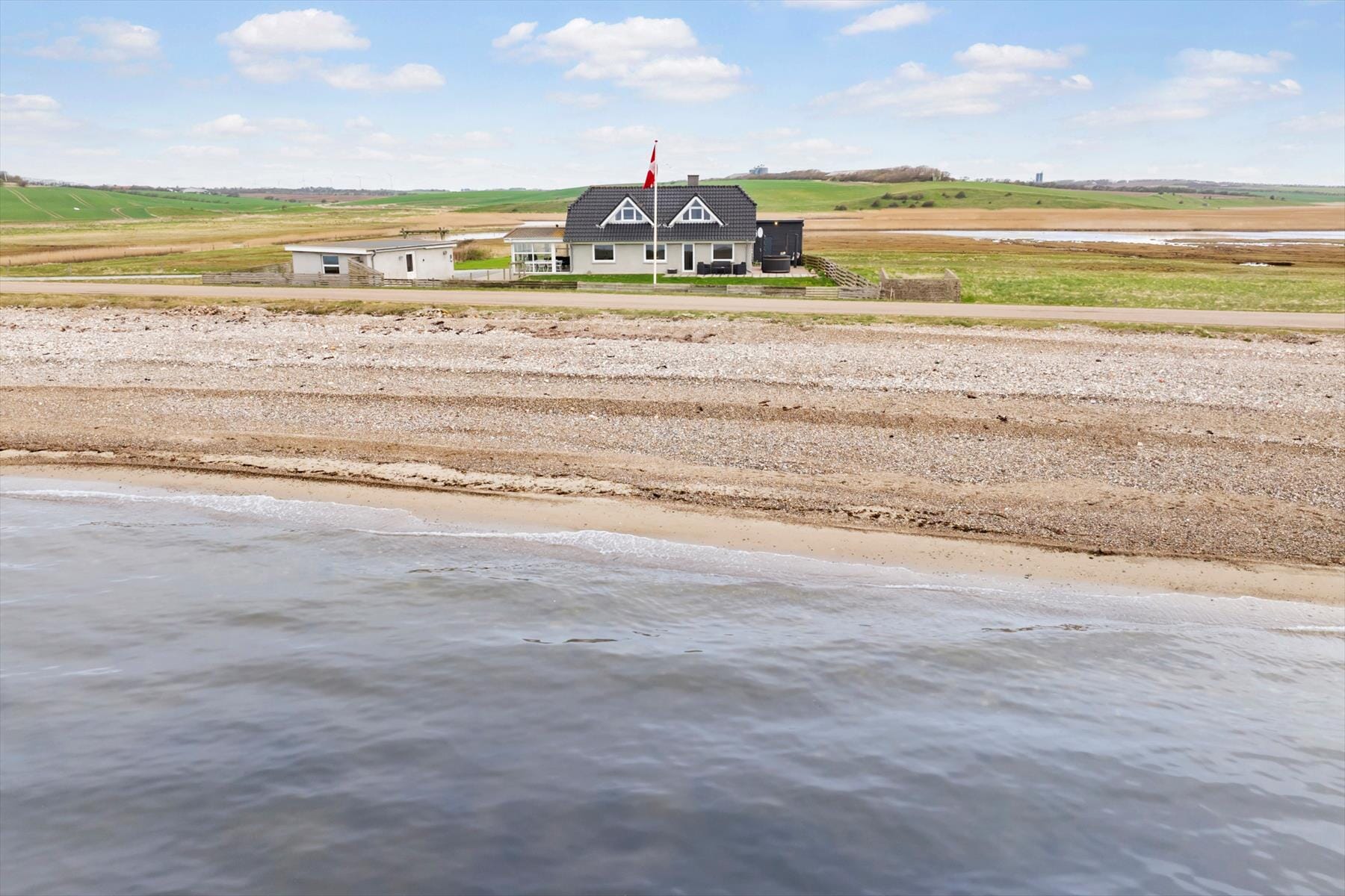 Stugor i Helligsø Drag, Nordjylland, med plats för 8 vuxna och 2 husdjur. Trevlig inredning med bl.a. brasa, och det finns dessutom tvättmaskin, diskmaskin och torktumlare i bostaden.