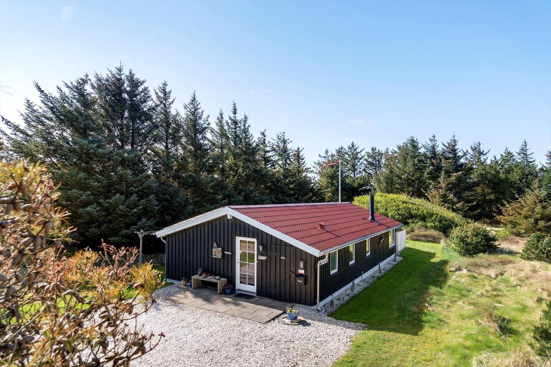 Stugor i Vorupør, Nordjylland, med plats för 5 vuxna och 1 husdjur. Trevlig inredning med bl.a. brasa, och det finns dessutom tvättmaskin och diskmaskin i bostaden.