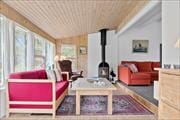 Stugor i Vorupør, Nordjylland, med plats för 6 vuxna och 2 husdjur. Trevlig inredning med bl.a. brasa, och det finns dessutom tvättmaskin och diskmaskin i bostaden.