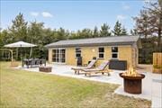 Stugor i Lyngby, Nordjylland, med plats för 6 vuxna. Trevlig inredning med bl.a. brasa, och det finns dessutom tvättmaskin och diskmaskin i bostaden.