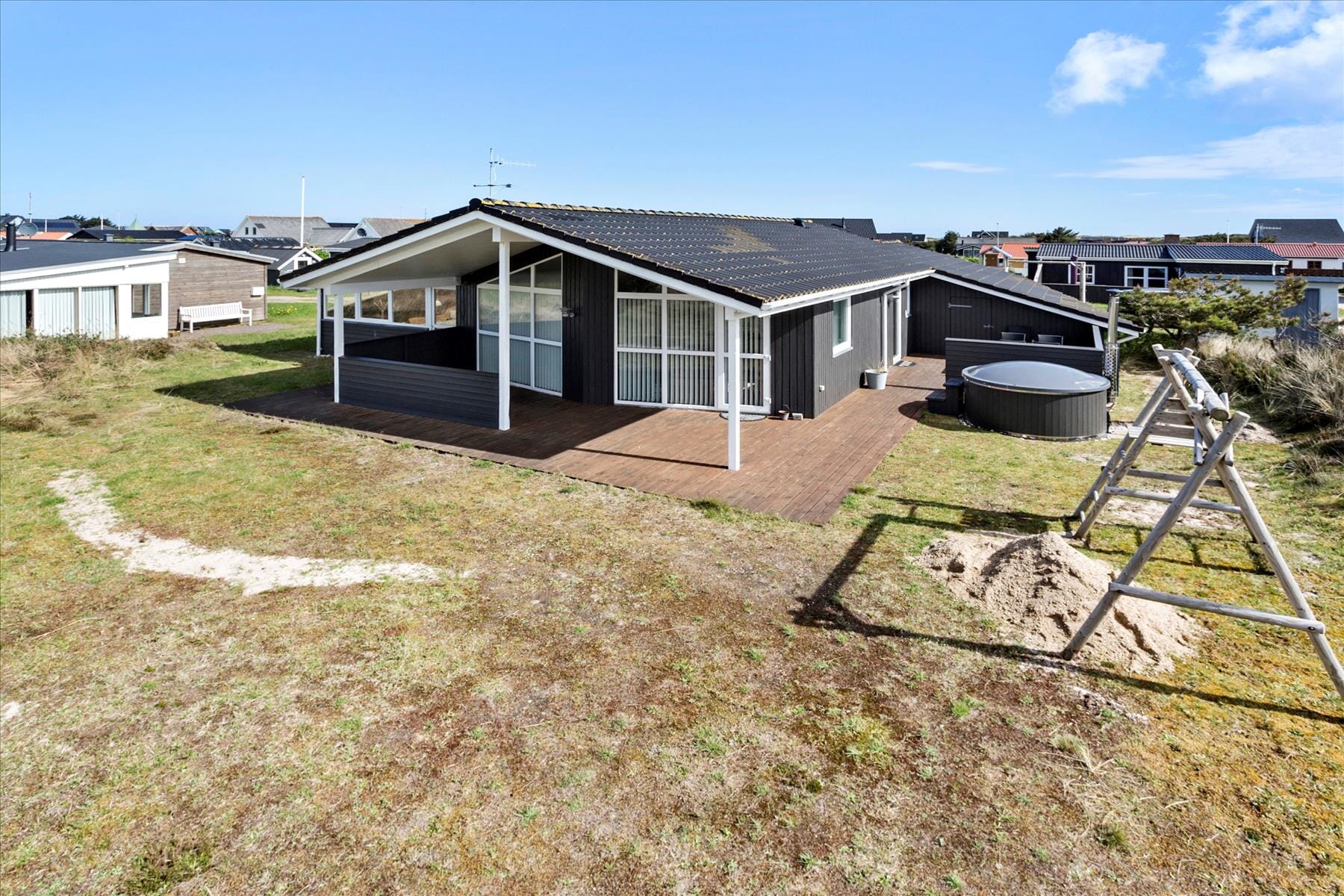Bostaden är 100 kvm stor med en tomt på 750 kvm, där det bl.a. finns gungor.