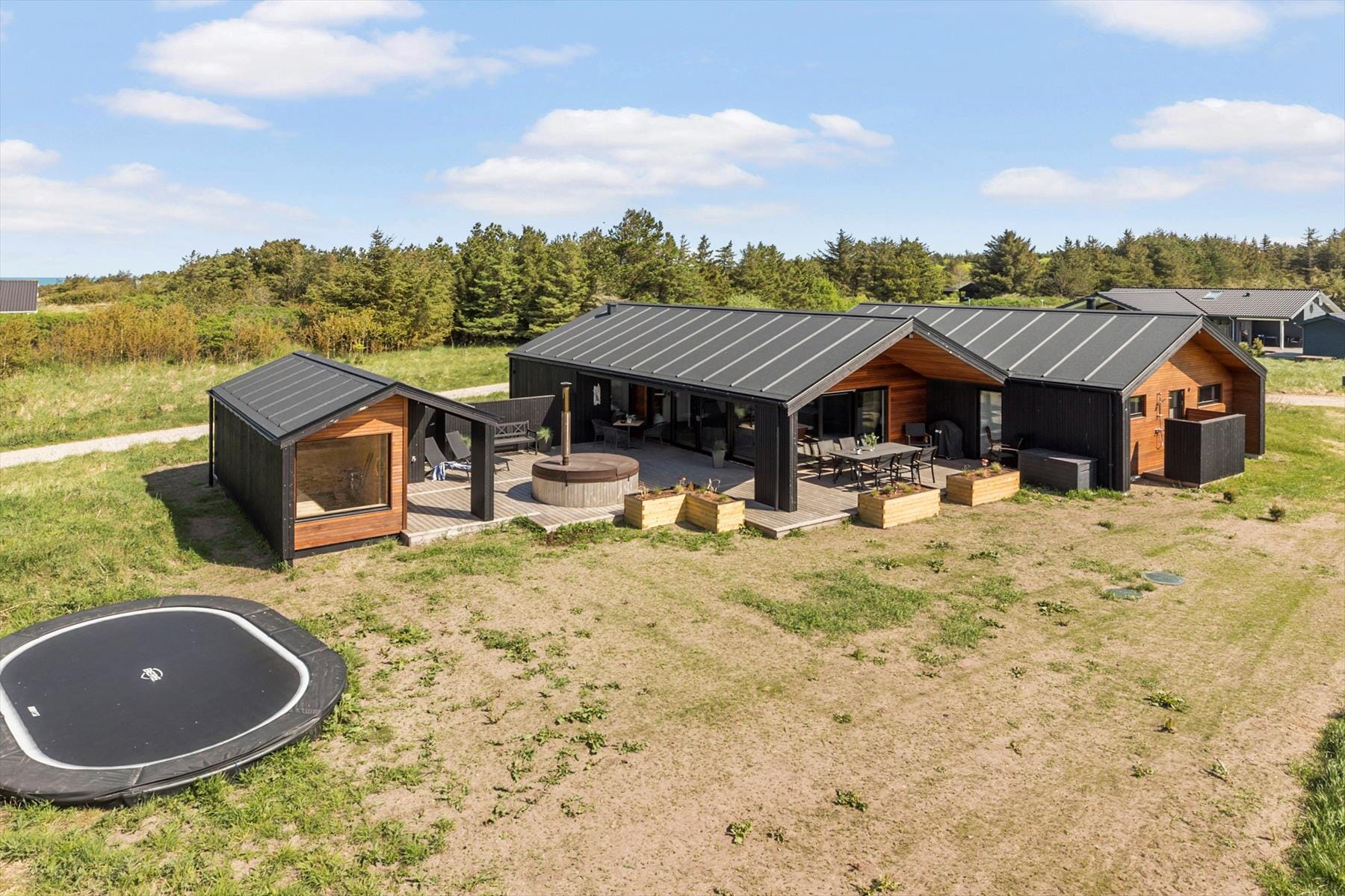 Bostaden är 125 kvm stor med ett 9 kvm stort annex och en tomt på 1 300 kvm, där det bl.a. finns studsmatta.