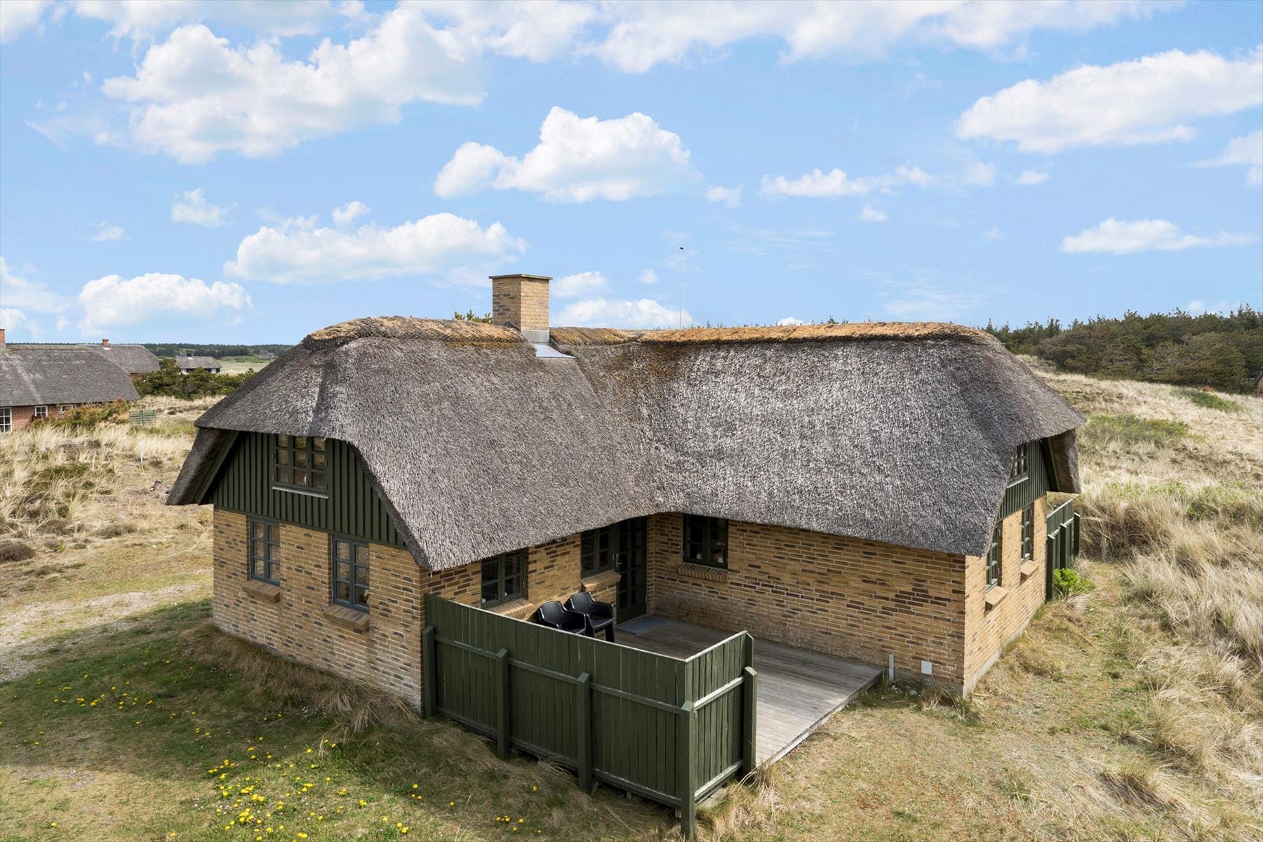 Stugor i Vester Husby, Västjylland, med plats för 6 vuxna. Trevlig inredning med bl.a. brasa, och det finns dessutom tvättmaskin i bostaden.