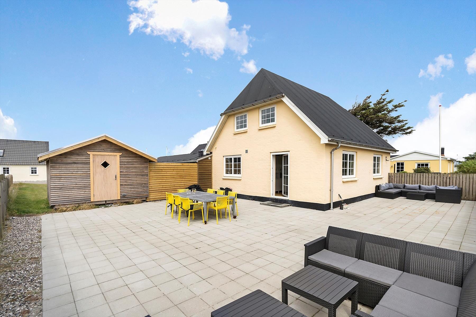 Stugor i Thorsminde, Västjylland, med plats för 6 vuxna och 1 husdjur. Trevlig inredning, och det finns dessutom tvättmaskin, diskmaskin och torktumlare i bostaden.