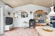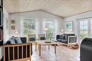 Stugor i Vester Husby, Västjylland, med plats för 6 vuxna och 2 husdjur. Trevlig inredning med bl.a. brasa, och det finns dessutom tvättmaskin och diskmaskin i bostaden.