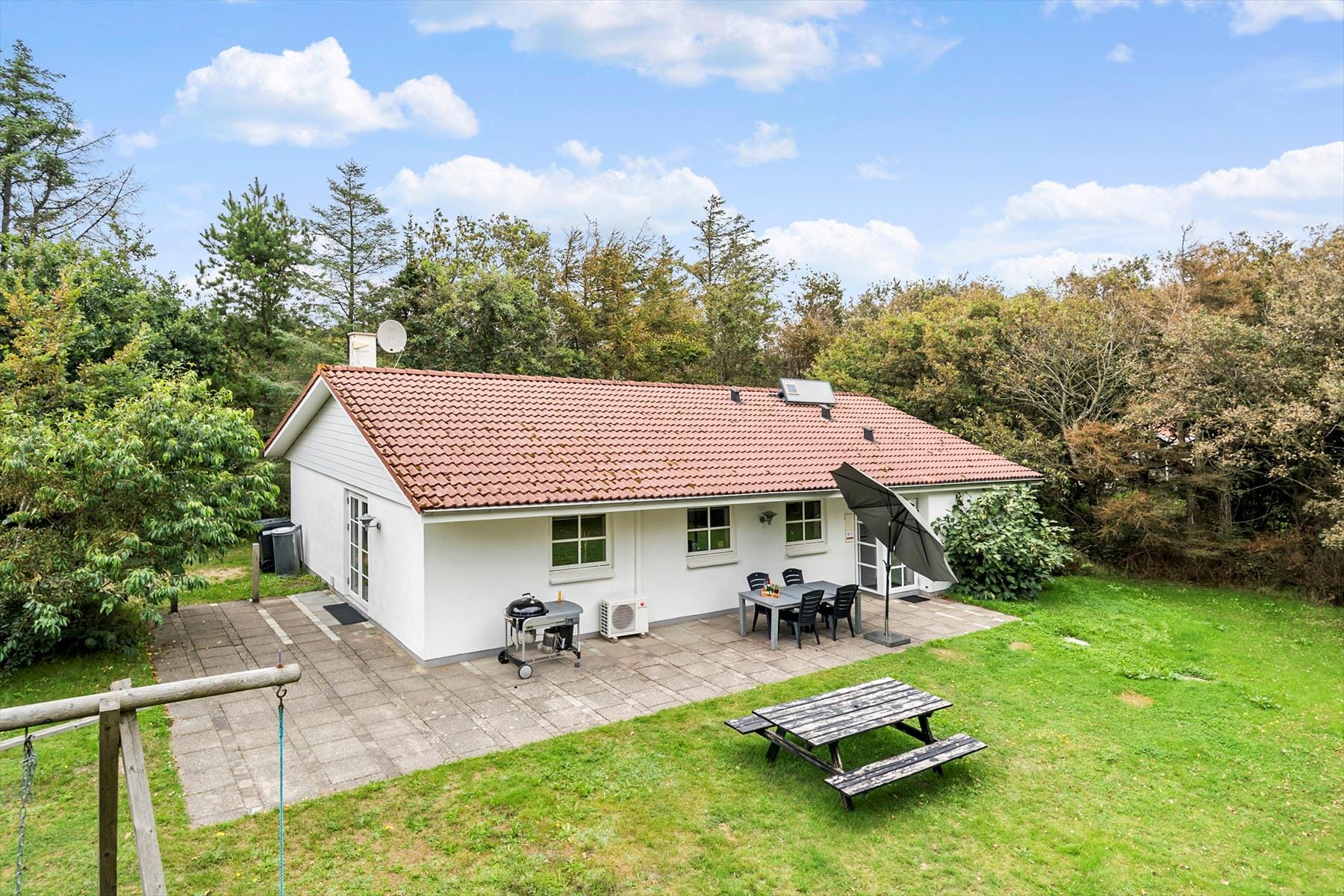 Bostaden är 122 kvm stor med en tomt på 1 200 kvm, där det bl.a. finns gungor och sandlåda.