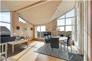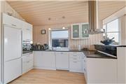 Indenfor mødes du af en lys og venlig atmosfære, hvor den funktionelle indretning gør det let at finde sig til rette. Køkken og stue er forbundet i et åbent opholdsrum, der indbyder til samtale og fælles stunder – uanset om du laver aftensmad, spiller spil eller bare læner dig tilbage med en god bog. Store vinduer trækker dagslyset ind og skaber en behagelig stemning, og selv på en blæsende dag er det let at føle sig tryg og hjemme i de varme og hyggelige omgivelser. Her kan du både høre vinden suse udenfor og nyde lyden af grin og liv indenfor – alt sammen med naturen som kulisse.