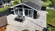 Skinner sommersolen over Vejlby Klit, er det herligt at nyde ferielivet på den store træterrasse, der breder sig om tre af husets sider. Også i mindre strålende vejr kan I sidde ude i det fri, for den lille overdækning kan give ly for lidt småregn eller dug om aftenen. På terrassen er der havemøbler og liggestole til rådighed foruden en grill, så I kan allerede nu begynde at fantasere om, hvilke grill-egnede lækkerier, der skal på feriemenuen. Har I små børn med på ferien, kan de se frem til at gynge og spille bold på grundens grønne græsplæne.