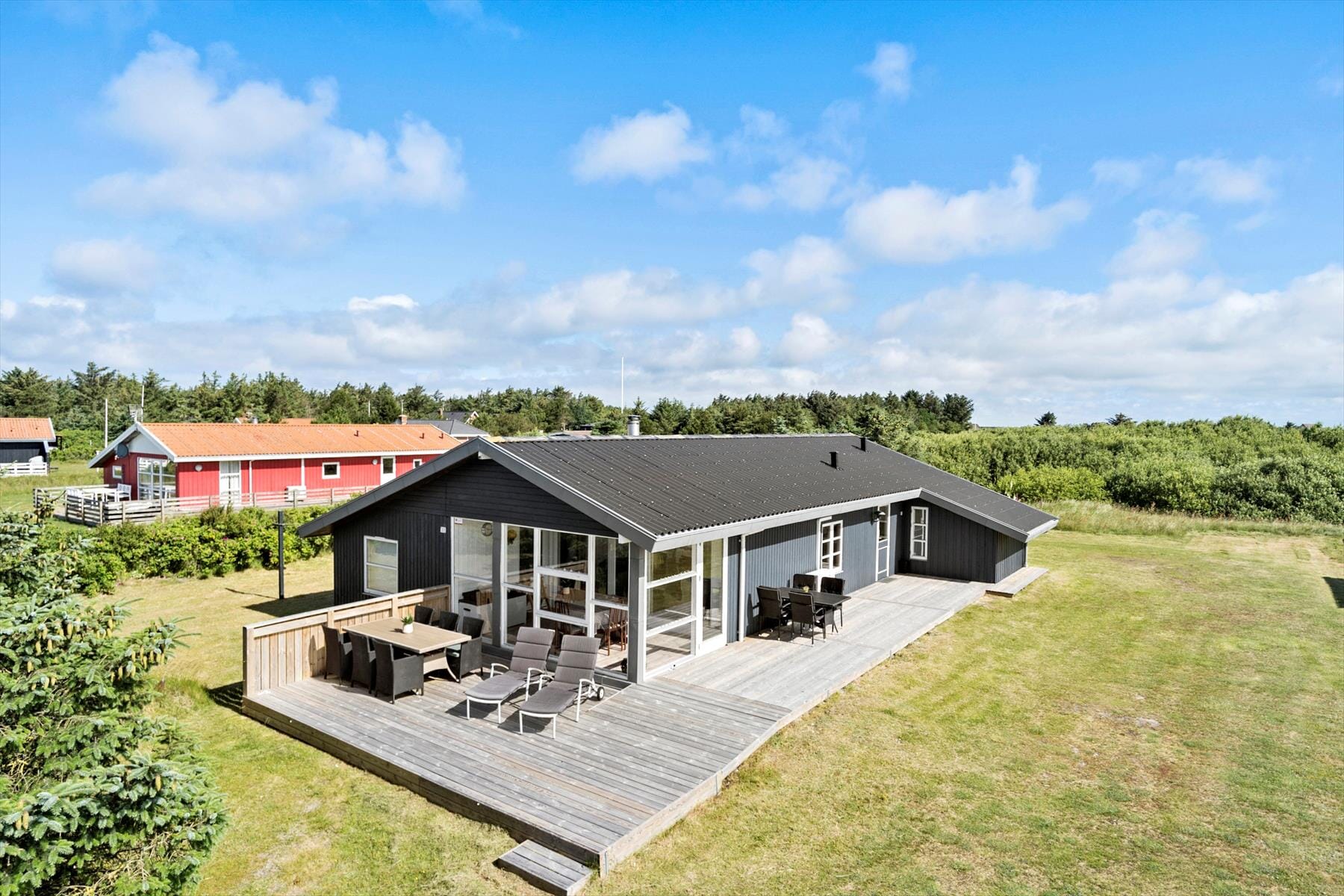 Sommerhuset ligger på en dejlig grund med gode terrasseområder, hvor du kan slappe af og nyde den friske luft fra Vesterhavet. På de lune dage kan du dække op til frokost i solen, mens børn og hund trygt kan lege på græsplænen. Terrassen er afskærmet, hvilket giver dig privatliv og læ, når vinden rusker. Med gåafstand til stranden kan du hurtigt tage en forfriskende dukkert eller nyde en lang gåtur i det bløde sand, mens du mærker vinden i håret og lytter til bølgernes brusen.